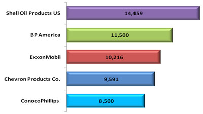 Keeps Its Brand Presence Of the 159,006 fueling stations in the country, approximately 34 percent have a major oil company brand, and another 18 percent carry the brand of a refining company. The remainder 48 percent sell a private brand. These outlets are independent business owners who have established their own fuel brand (i.e., QuikTrip, 7-Eleven) and purchase fuels either on the open market or via unbranded contracts with a refiner/distributor. Major oil-branded retail outlets 54,266 total sites 34 percent of fueling locations (Source: National Petroleum News MarketFacts 2010) Top refiner-branded retail outlets 28,884 total sites 18 percent of fueling locations (Source: National Petroleum News MarketFacts 2010) Other